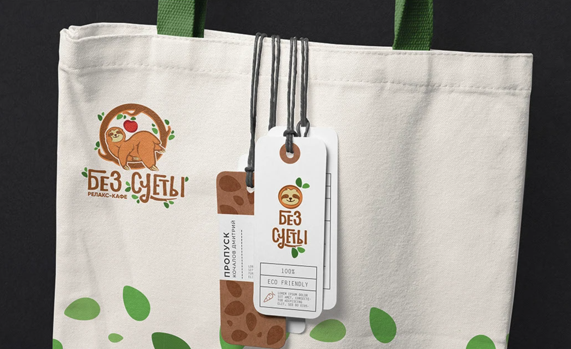 Дизайн и разработка логотипа и графического оформления кафе "Без суеты". Логотип, айдентика, банеры, соцсети